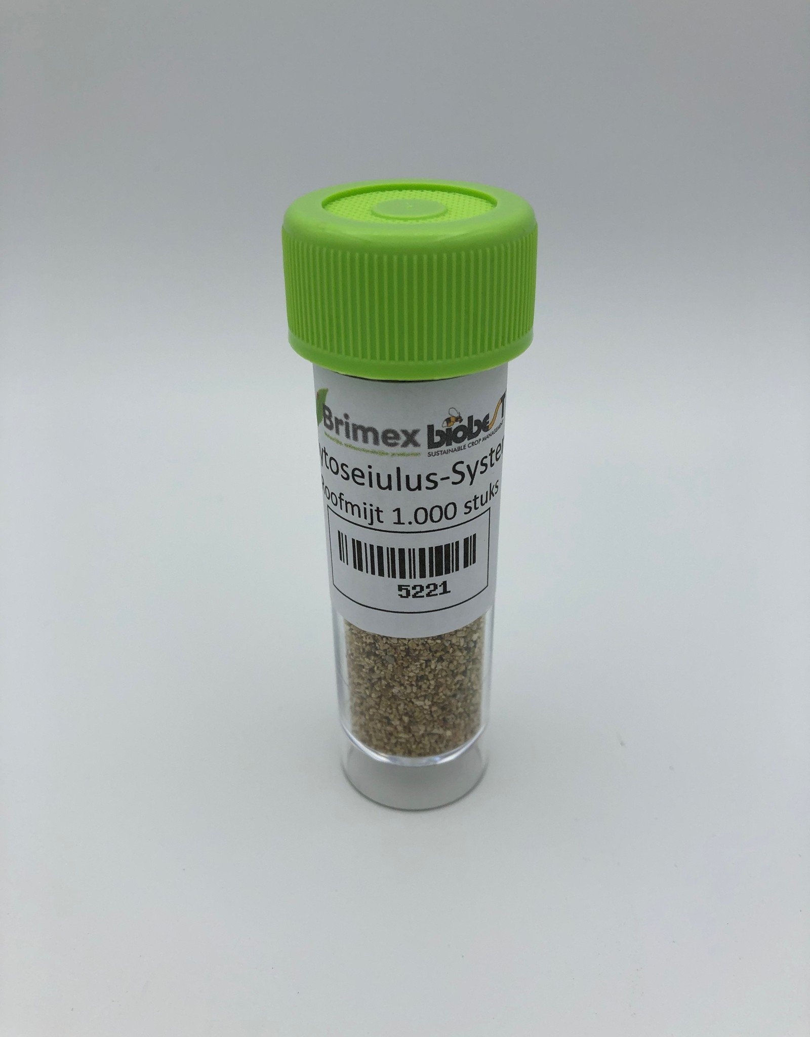 De roofmijten worden verpakt in een flesje van 1000 exemplaren, goed voor een te behandelen oppervlakte van 50 tot 60 m2.